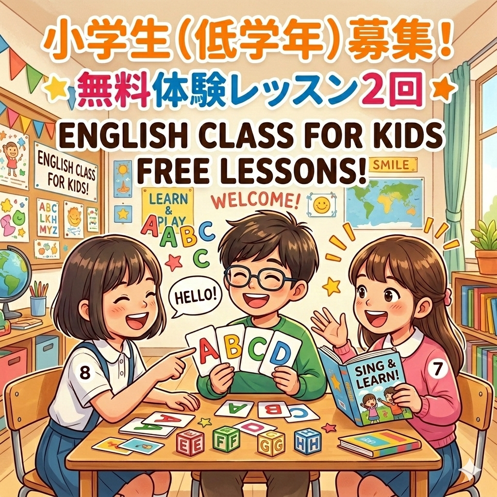 【低学年募集】英検協会から10年の奨励を受ける確かな英語教室で、楽しく学びませんか?歌や遊びを取り入れたレッスンで、お子様の好奇心を刺激します。今なら無料体験レッスン2回実施中!お申込みはこちら -